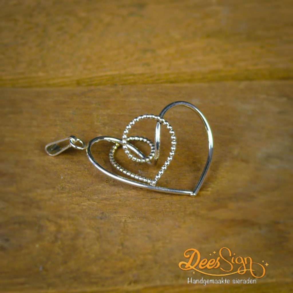 Zilveren draadhanger gemaakt van diverse draadsoorten
